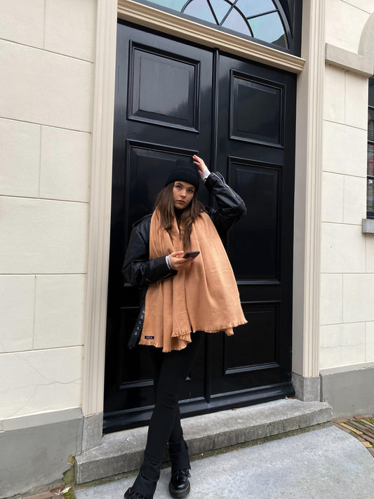 Peach colored winter scarf