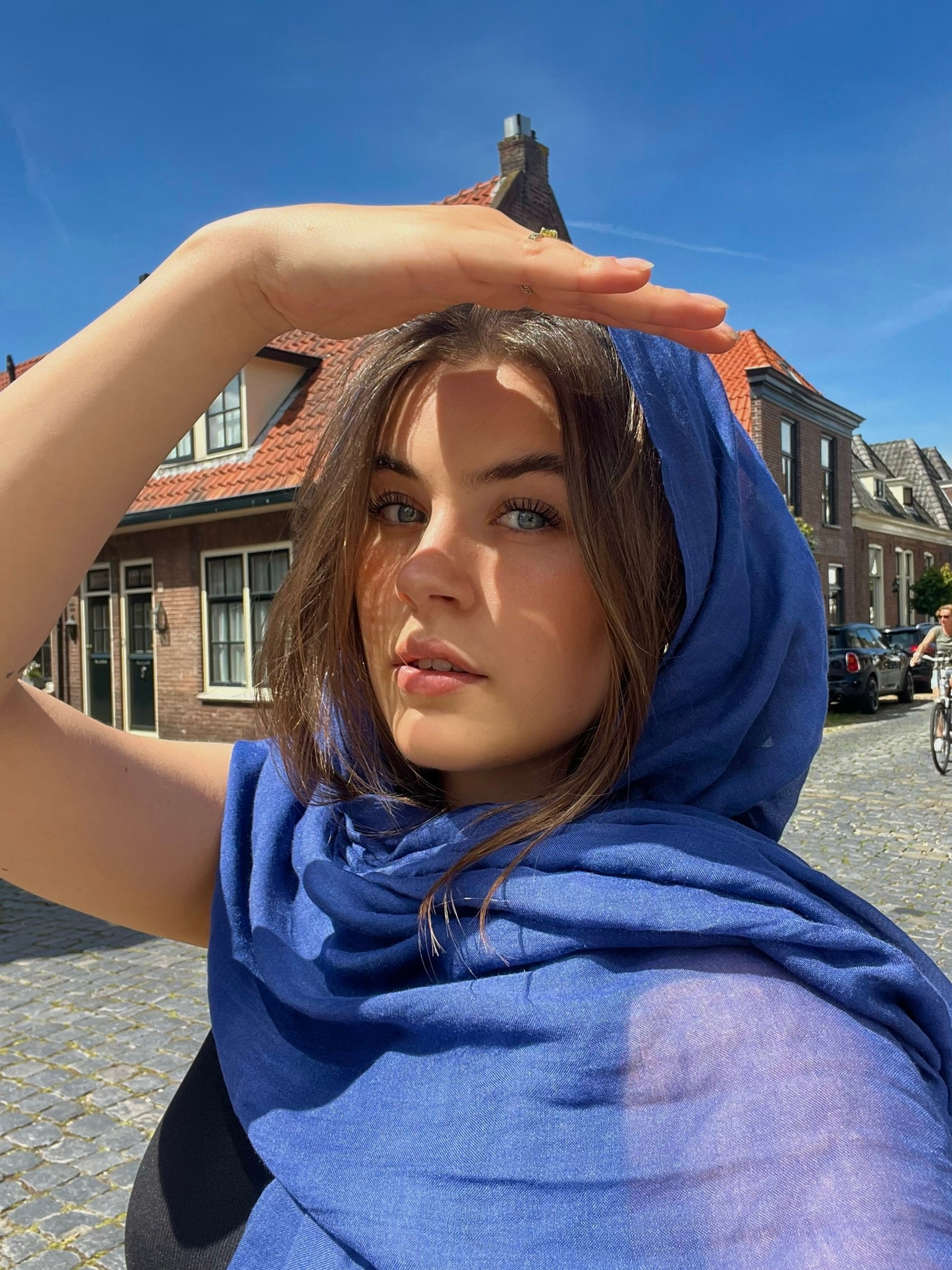 This solid deep blue scarf is a perfect summer scarf, the scarf is translucent and lightweight. The color is blue which is a perfect combination with the translucent scarf. The lightweight fabric with a combination of the softness of the silk makes the scarf perfect for summer.