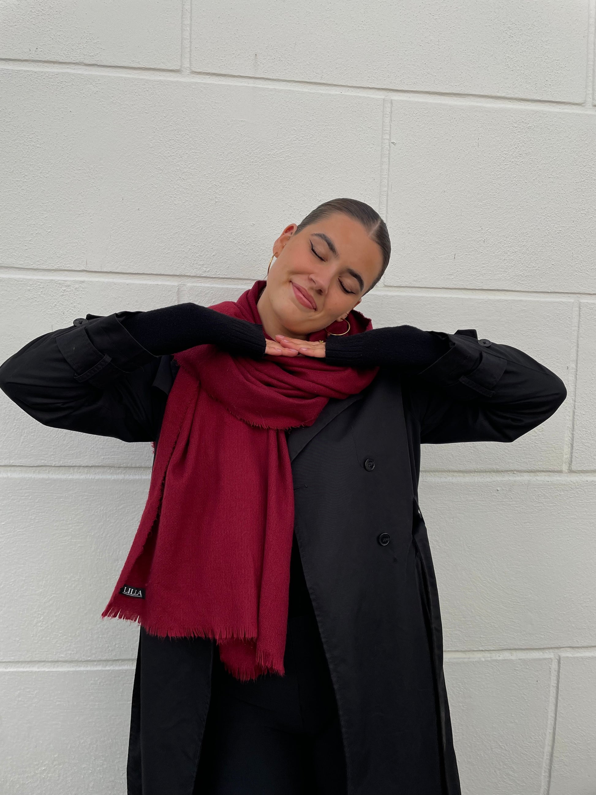 This burgundy red solid colored winter scarf is super soft and does not itch, making them perfect for winter. They are not heavy around your neck, but are a bit lighter. For example, the scarf is nice to wear as a wrap or just nice and warm around your neck.